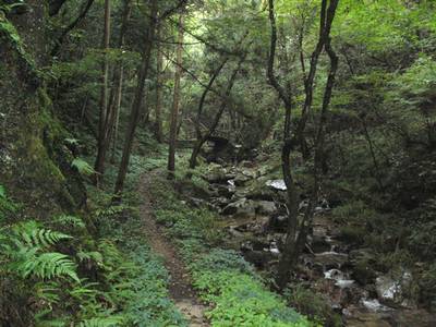 | (^^);もう少し先に滝があります。 | どこがが道かわかります。 マムシや熊が出ても不思議でないわ(~Q~;) ↓ |
