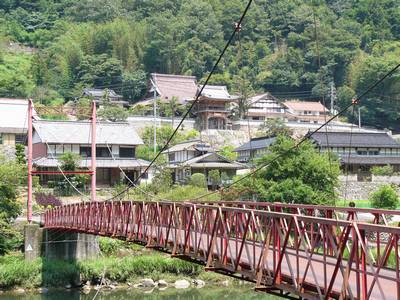 | 京風精進料理 が楽しめるそうです。 | 紅葉の季節は赤い吊橋と相まって絶景だとか。 | |