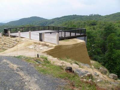 | 西門 標高約400M・・・遠くは高松のさぬき富士が見えるそうです。この日は天気が良く夏特有の晴れ曇視界はよくありません。 |