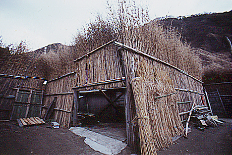 海に面した家の外壁はほとんどが板塀でできており窓が少なく、海沿いでは風除けに竹を張り巡らした家を見かけました。