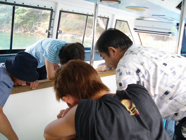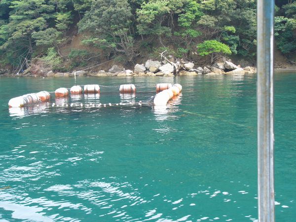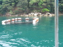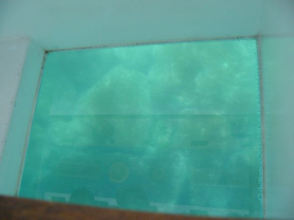 海底はぼんやりと岩と海草しか見えません、これでは悪いと思ってか帰りに一辺20mほどの生けすに上で船が停泊、これでごまかした感じです(^^)これまで本土のクラズボートや海中遊覧船的なものみなハズレでした。 |