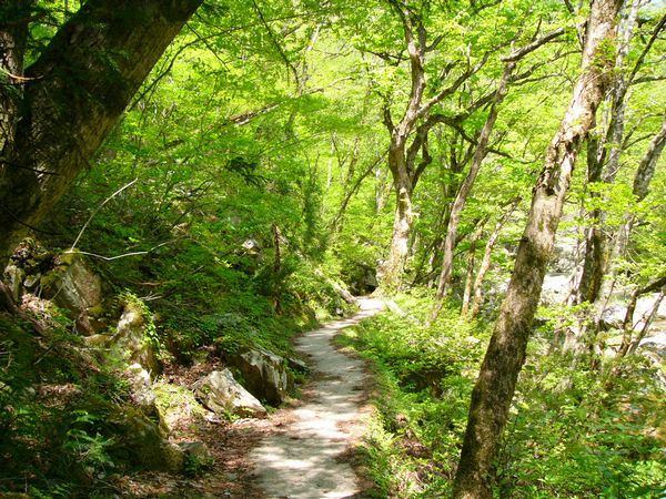 道中道がけわしく一歩足を踏み外すと真っ逆さまってところもあります。