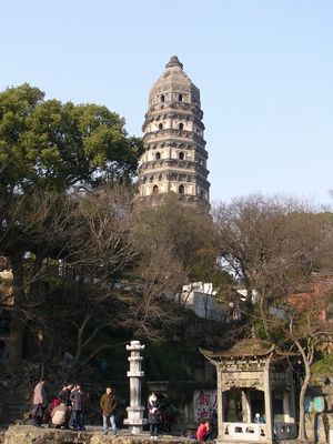 | 元旦・・・(虎丘)斜塔 塔がもっとも傾いてみえる広場は絶好の撮影ポイント。 観光客でにぎわってました。 少し傾けて撮るとより傾いて見えます(^^) |