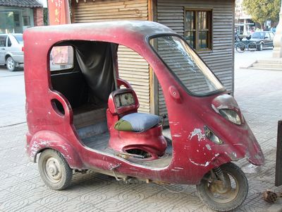 | 電動三輪車・とにかく電動車が多いのにはびっくり! 電動リアカー強力運搬車も大活躍(^^)。 |