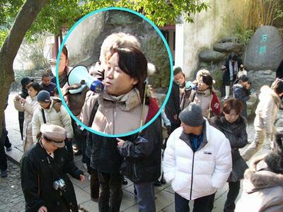 | 今回お世話になった現地のガイドさん、日本へは中国人を連れ行くそうで日本事情にも詳しいです。 | 手漕ぎの船で鳥鎮民宿に向かいます。 写真前後むちゃくちゃ(^^)。 |