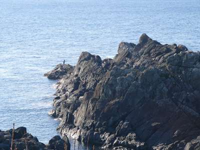 これが本州最南端!。 本州最南端で釣りをしてる人がいます。 風も波も無く釣り日和。 |